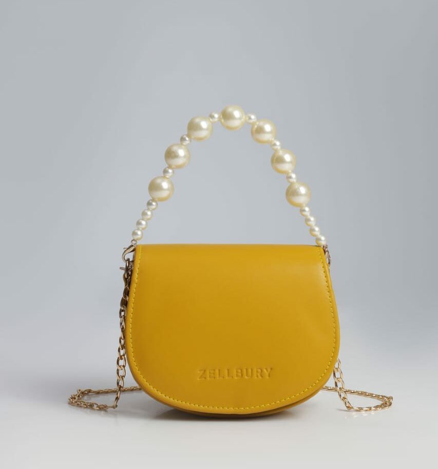 Add a touch of luxury to your outfit with the ZELLBURY Mini Luxe Handbag. Featuring a stunning pearl handle and a sleek mustard finish, this compact purse is the ultimate accessory for parties, weddings, and evening glam.