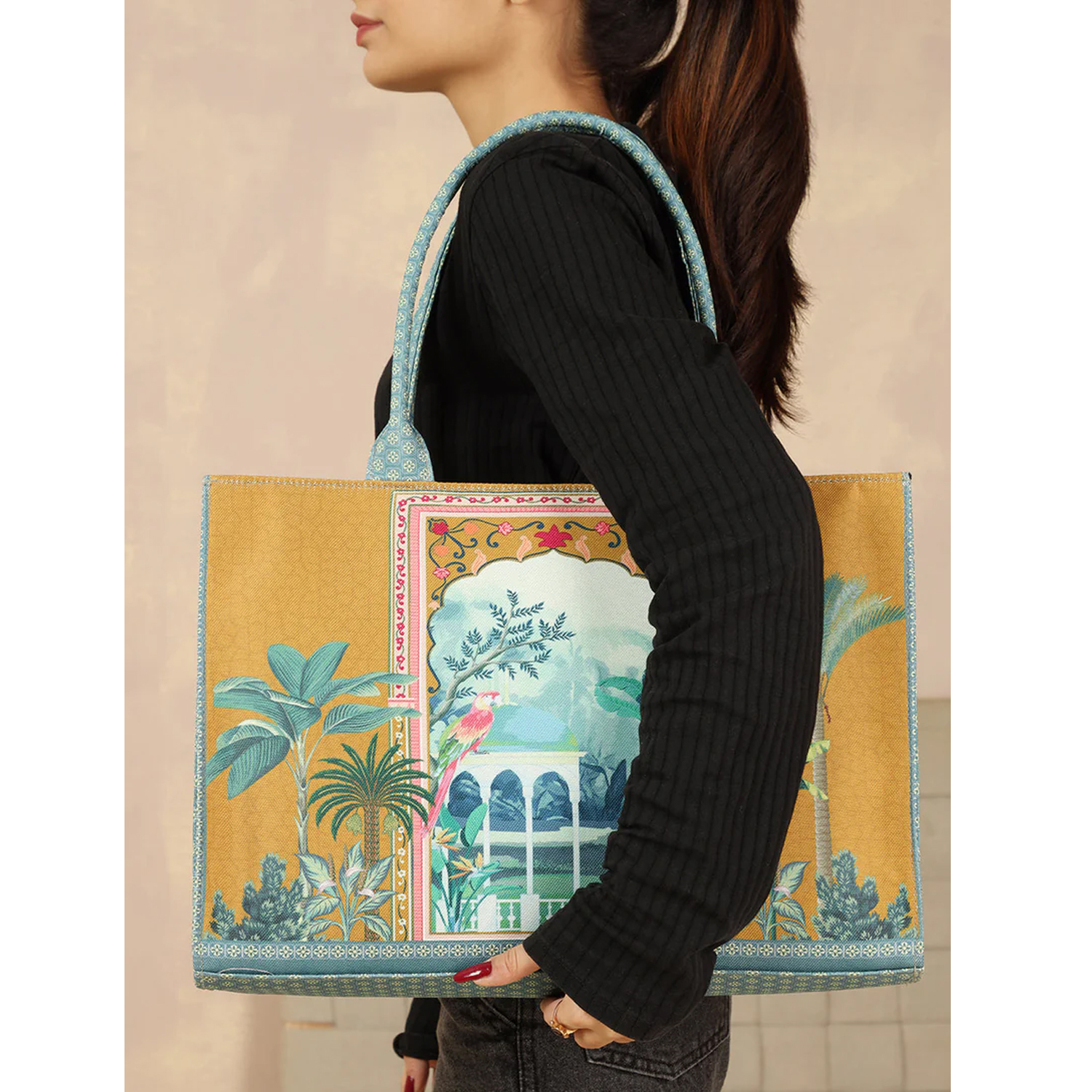 ZELLBURY Premium Canvas Tote Bag – Artistic Heritage, Floral & Mandala Prints